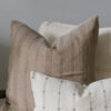 Tkanina to beżowe tło i pasy tańczące jasno brązową nicią.