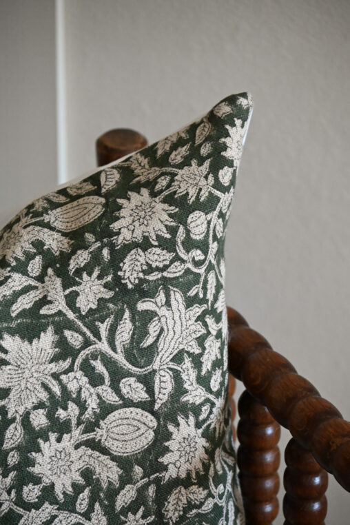 Każdy egzemplarz to unikat – delikatne różnice w nadruku świadczą o autentyczności ręcznego wykonania. Miękka w dotyku, ale trwała tkanina sprawia, że poduszka jest nie tylko piękna, ale i praktyczna.
