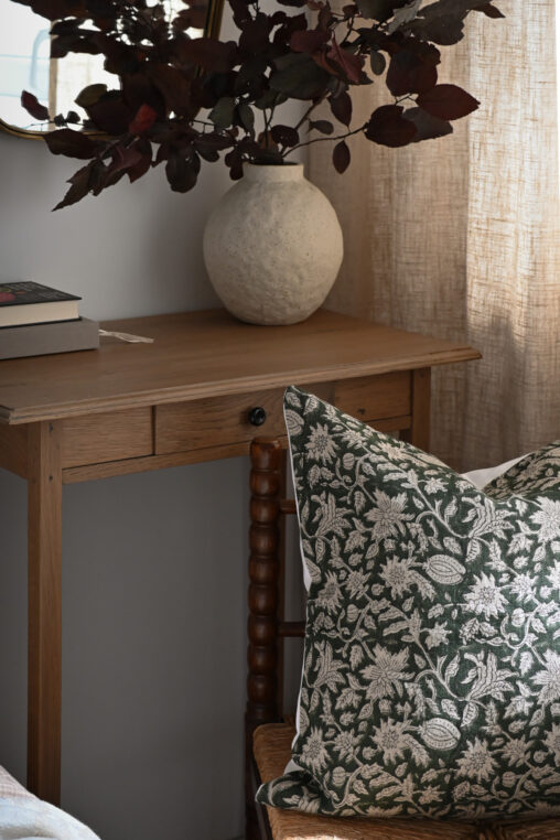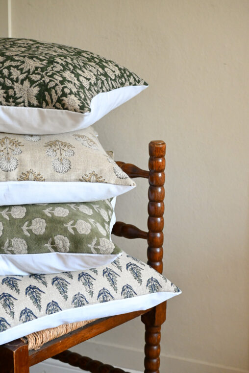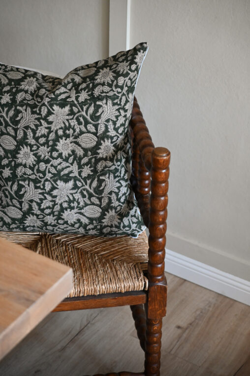 Wykonana z oryginalnego indyjskiego lnu, barwiona ręcznie, metodą block print. Poszewka łączy w sobie tradycyjne rzemiosło, z nowoczesnym designem. Wyjątkowy wzór w naturalnych odcieniach dodaje wnętrzu głębi i charakteru.